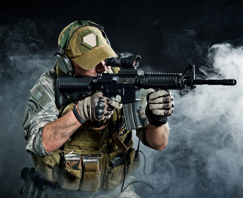 迷彩印花面料是利用色块使士兵形体融汇于背景色的伪装性军服